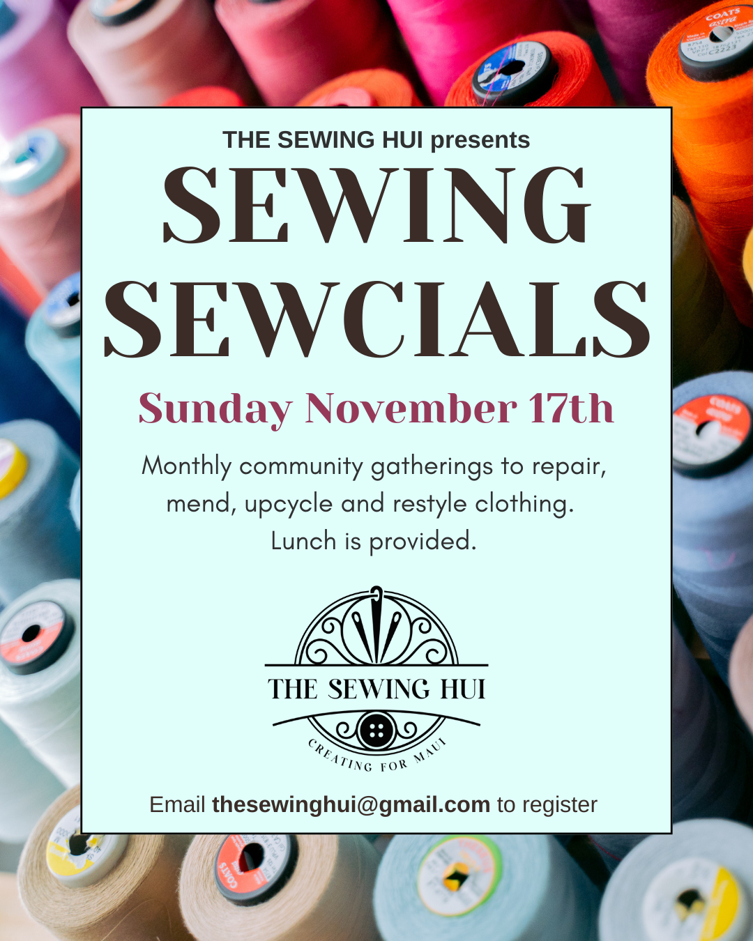 These events are monthly community gatherings where participants are invited into our sewing studio to repair, mend, upcycle and restyle their clothing. We will share sewing techniques for repairing and mending clothing in each session. The purpose of the program is to keep textile waste out of the landfill. After each sewcial, we will weigh the clothing and keep track of how much we have been able to save. Lunch will be provided and the event will be an opportunity for the community to connect. Join us for these sewcials to gather together, sew, chat, and enjoy lunch! Space is limited per session so be sure to register in advance by emailing thesewinghui@gmail.com. This event is open to anyone - so please tell your friends, spread the word.