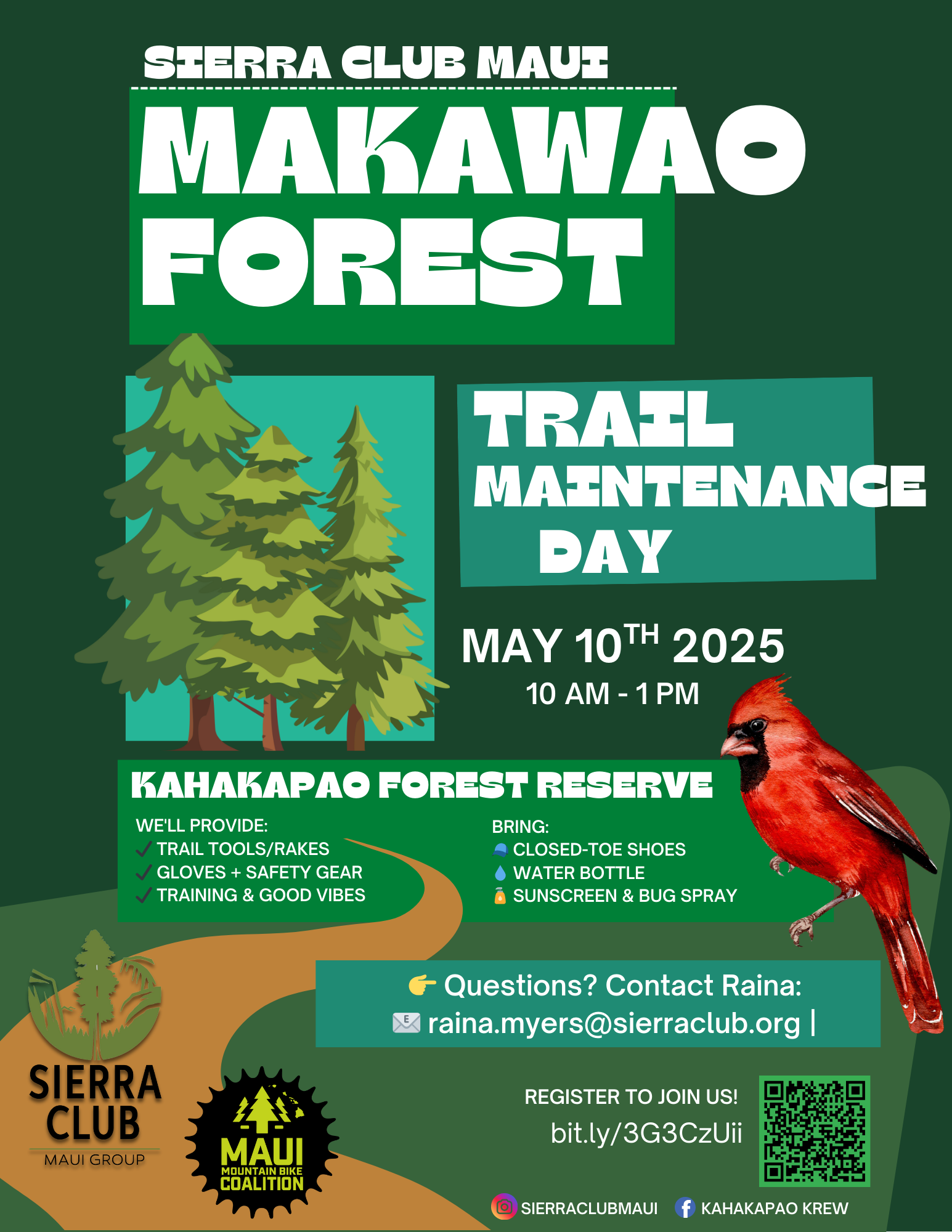 We're teaming up with the Maui Mountain Bike Coalition to clean up the trails after the recent storm—so if you have a rake, please bring it along! No experience needed—just bring sturdy shoes, water, and a good attitude!